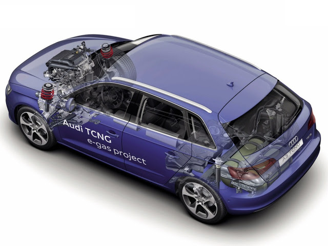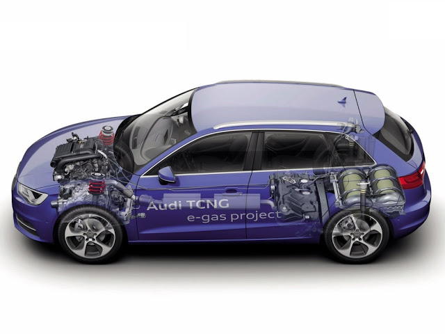 Wysoce efektywne Audi A3 Sportback TCNG zużywa na 100 km według danych producenta jedynie 3,6 kg gazu ziemnego lub e-gazu Audi, czyli paliwa nad wytwarzaniem którego prowadzone są prace w ramach projektu Audi e-gas project.