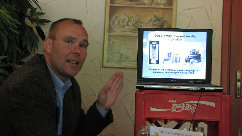 Kolejnym punktem naszego spotkania była prezentacja Gerarda Bartłomiejczyka „Tankowanie CNG”. Z prezentacji dowiedzieliśmy się obowiązujących norm prawnych i technicznych z zakresu eksploatacji pojazdów i procedur tankowania gazu, stosowanych rozwiązań technicznych w zakresie budowy stacji tankowania. Na załączonych wykresach i filmach mieliśmy również okazję obejrzeć przykładowe tankowanie sprężonego gazu ziemnego do samochodu wraz z objaśnieniem poszczególnych czynności czy sposób zachowania kierowcy w trakcie pożaru paliwa podczas tankowania, wraz z instrukcjami jak należy zachowywać się w sytuacjach krytycznych. Podsumowując zaprezentowane informacje jednogłośnie stwierdziliśmy, że mieliśmy wyjątkową okazję dowiedzieć się wielu nieznanych nam wcześniej aspektów tankowani CNG. Okazało się, że tankowanie pojazdu gazem ziemnym jest o wiele bardziej bezpieczne niż paliwami płynnymi. Stwierdziliśmy również, że nie istnieją żadne przeciwwskazania, aby tankować pojazdy samodzielnie przy zachowaniu odpowiednich środków ostrożności, tak jak ma to miejsce w krajach Europy Zachodniej. Niestety tankowanie CNG w Polsce i tankowanie go poza granicami naszego kraju to zupełnie inne obrazy. Warto skorzystać z doświadczeń innych, a nie pioniersko przecierać szlaki już dawno przetarte.