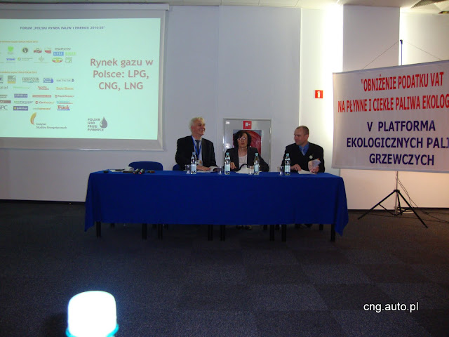 Wspólnie prezentacjami i opiniami wywołaliśmy z prowadzącym dyskusję. Sugerując pogląd, że uwierzy w CNG jeśli PGNiG będzie użytkowało pojazdy NGV wywołał do zabrania głosu Pana Włodzimierza Sanockiego Doradcę Zarządu, który zaprezentował znaczne ilości takich samochodów eksploatowane w PGNiG w wielu regionach Polski. Wskazał, że ciężar rozwoju CNG w naszym kraju dźwigany jest na dzień dzisiejszy przez tą Firmę samodzielnie, a tak być nie powinno. Ekologię powinno wspierać Państwo. Za tym winna iść edukacja, którą prezentując na niewystarczającym poziomie w problematyce CNG wywołałem do zabrania głosu Pana prof. Andrzeja Piętak z Uniwersytetu Warmińsko Mazurskiego. Jego studenci są uświadomieni w tym zagadnieniu przez grono profesorskie, które zajmuje się tą tematyką od wielu lat i dzięki prowadzonym badaniom zapewnia, że CNG nie jest paliwem rakotwórczym.